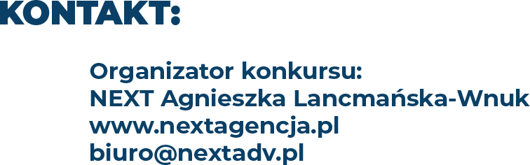 Wyrażam zgodę na przetwarzanie przez NEXT Agnieszka Lancmańska-Wnuk z siedzibą w Warszawie, pod adresem: ul. Błękitna 85A, 04-633 Warszawa, moich danych osobowych, podanych przeze mnie w Formularzu Zgłoszeniowym, na potrzeby udziału w Konkursie “Łazienka czysta i pachnąca”, w celach związanych z organizacją i przeprowadzeniem Konkursu.